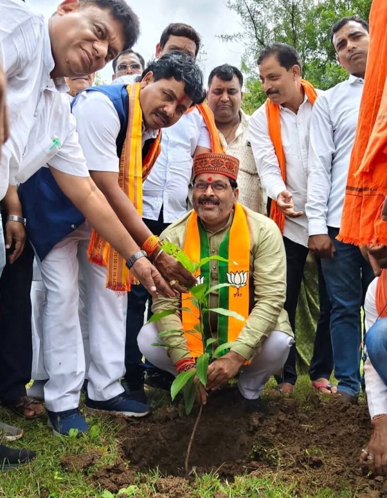 रायगढ़ :- माँ के नाम से वृक्षारोपण प्रकृति से जुड़ाव का एहसास कराता है। वृक्षारोपण को समाजिक उत्तरदायित्व बताते हुए जिला भाजपा अध्यक्ष अरुण धर दीवान ने आज खरसिया विधानसभा के सुपा मण्डल स्थित ग्राम लिंजिर के 5 एकड़ के क्षेत्र में नमो वन वाटिका में एक पेड़ मां के नाम कार्यक्रम के दौरान कही। श्री दीवान जिले भर में मोदी के जन्मदिन पर चल रहे सेवा पखवाड़ा के तहत चल रहे विभिन्न आयोजनों में शिरकत कर आम जनता से संवाद स्थापित कर मोदी सरकार की जनकल्याणकारी योजनाओं से अवगत करा रहे है। उन्होंने आम जनता से भी आह्वान करते हुए कहा माँ के नाम कर वृक्षारोपण अभियान में शामिल होकर वृक्ष अवश्य लगाए । वृक्षारोपण के लाभ बताते हुए कहा वृक्षों से निकलने वाली ऑक्सीजन हमारे लिए प्राण वायु है। वृक्षों के बहुआयामी लाभ है सबसे बड़ी बात है वृक्ष जीवन पर्यन्त कुछ न कुछ समाज को देते ही है। जीवन में कुछ न