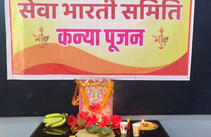 रायगढ़ /शारदीय नवरात्र महानवमी के अवसर पर 1 अक्तूबर को सेवा भारती समिति रायगढ़ द्वारा कोतरा रोड स्थित सुदर्शन कुंज में 108 कन्याओं का पूजन कर मां शक्ति स्वरूपा की आराधना की गई l कार्यक्रम में भक्तिमय वातावरण में मां दुर्गा की आरती तथा कन्या भोज का आयोजन हुआ l