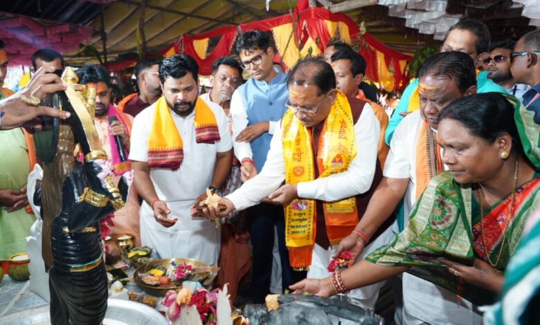 रायगढ़, 10 अक्टूबर 2025/ मुख्यमंत्री श्री विष्णुदेव साय लैलूंगा विकासखंड के झगरपुर में आयोजित श्री श्री रणेश्वर रामचण्डी मंदिर की प्राण-प्रतिष्ठा कार्यक्रम के वेदी पूजन कार्यक्रम में सम्मिलित हुए। यहां उन्होंने माता रणेश्वर रामचण्डी का दुग्धाभिषेक कर प्रदेशवासियों के सुख-शांति, समृद्धि और खुशहाली की कामना की।