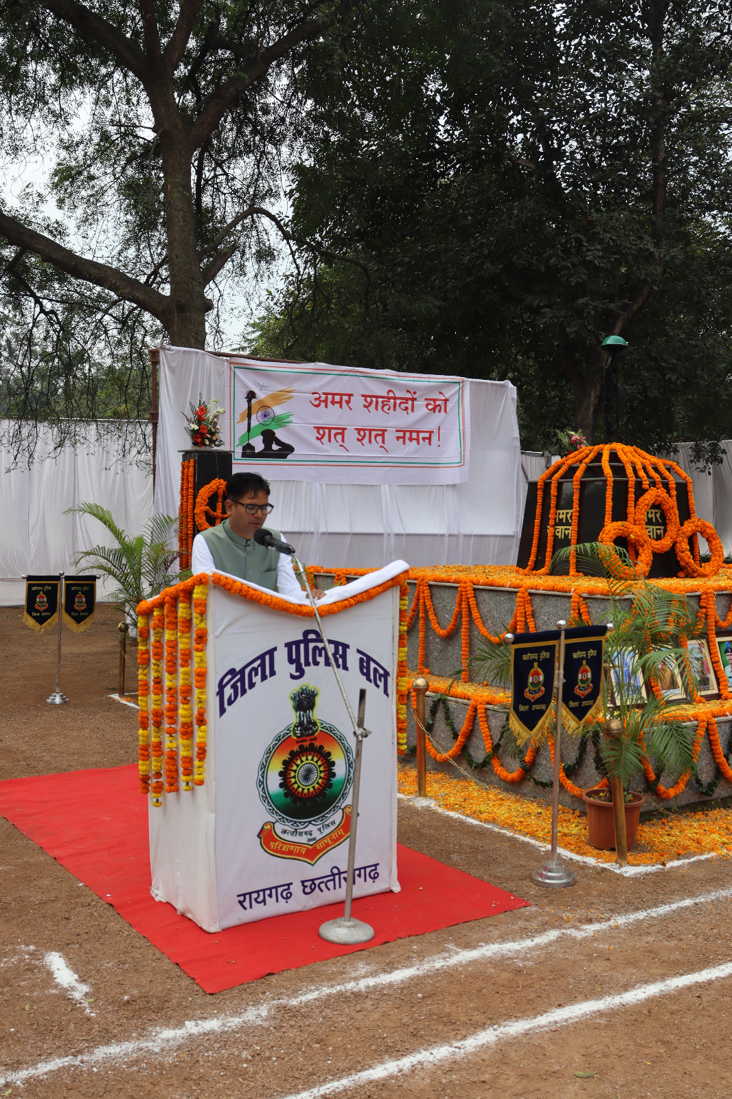 इस अवसर पर कलेक्टर श्री मयंक चतुर्वेदी, डीएफओ श्री अरविंद पी.एम., सीईओ जिला पंचायत श्री अभिजीत बबन पठारे, सेनानी 6वीं वाहिनी श्रीमती निवेदिता पॉल, उप सेनानी श्री बृजेश तिवारी तथा शहीदों के परिजन एवं बड़ी संख्या में पुलिसकर्मी उपस्थित रहे। सभी अतिथियों एवं अधिकारियों ने शहीद स्मारक पर पुष्पचक्र अर्पित कर वीर पुलिस जवानों को श्रद्धांजलि अर्पित की।