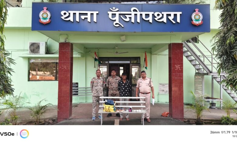 पुलिस अधीक्षक श्री दिव्यांग पटेल के दिशा-निर्देशन और डीएसपी साइबर सेल श्री अनिल विश्वकर्मा के मार्गदर्शन पर संपत्ति संबंधी अपराधों पर अंकुश लगाने के लिए साइबर सेल एवं थाना पूंजीपथरा की टीम को मुखबिर लगाकर सक्रिय किया गया था। इसी दौरान कल दोपहर तुमीडीह महुआ चौक के पास पुलिस ने संदेही शिवम बरेठ को पकड़ा। सूचना मिली थी कि वह और उसके साथी इलाके की दुकानों में चोरी करते हैं। पूछताछ में शिवम ने बताया कि उसने सितंबर माह में अपने साथी राकेश सोनी के साथ सराईपाली के यश मोबाइल, तुमीडीह के प्रधान मोबाइल और महुआ चौक स्थित कपड़े की दुकान में चोरी की थी। साथ ही, एक अन्य नाबालिग साथी के साथ भगत कॉलोनी, पूंजीपथरा से एचएफ डिलक्स बाइक की चोरी करना स्वीकार किया।