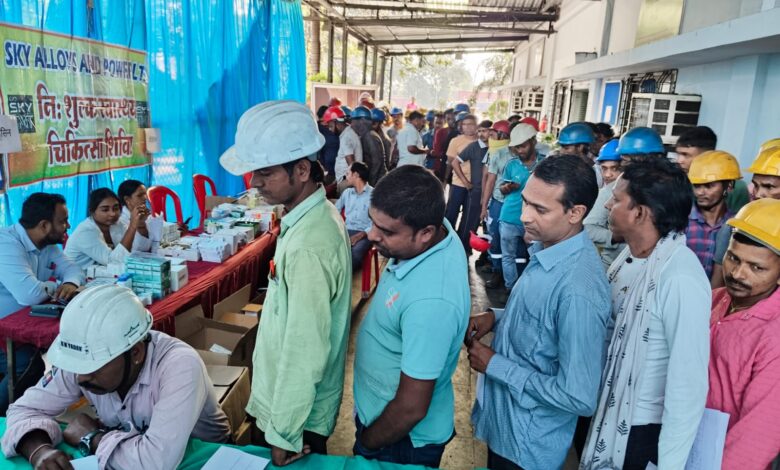 स्काई एलॉयज एंड पॉवर लिमिटेड में 08 नवंबर 2025 को ई.एस.आई.सी मेडिकल कैंप का आयोजन किया गया, जिसमें खरसिया डिस्पेंसरी से डॉ. विनोद दर्शन और उनकी टीम ने अपनी सेवाएं प्रदान कीं। इस कैंप में प्लांट ओएचसी टीम ने भी सहयोग किया।