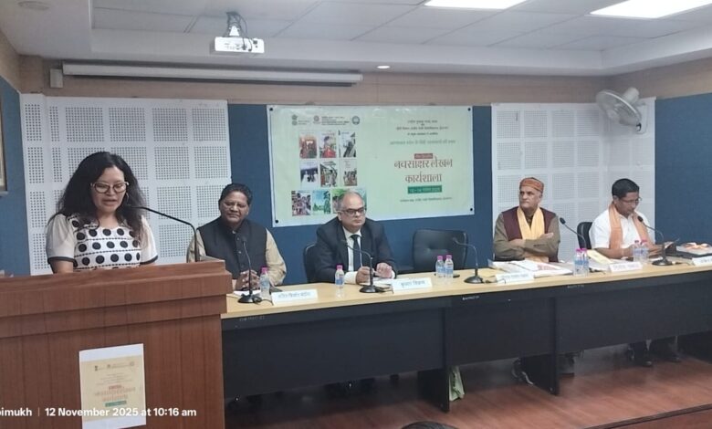 दोईमुख, ईटानगर। अरुणाचल प्रदेश में राष्ट्रीय पुस्तक न्यास, भारत की पहली बार हिंदी के रचनाकारों की ‘नवसाक्षर लेखन कार्यशाला’ का आयोजन राजीव गांधी विश्वविद्यालय, दोईमुख, ईटानगर में 12 से 14 नवंबर, 2025 को राजीव गांधी विश्वविद्यालय के हिंदी विभाग तथा नेशनल बुक ट्रस्ट के संयुक्त तत्वावधान में किया जा रहा है, जिसके अंतर्गत आज दिनांक 12 नवंबर, 2025 को विश्वविद्यालय के दूरस्थ शिक्षा विभाग में राजीव गांधी विश्वविद्यालय के माननीय कुलपति प्रो. जयदेव साहू तथा राष्ट्रीय पुस्तक न्यास, भारत के मुख्य संपादक एवं संयुक्त निदेशक श्री कुमार विक्रम ने उद्घाटन कर शुभारंभ किया। ‘नवसाक्षर लेखन कार्यशाला’ के उद्घाटन के दौरान मुख्य संपादक एवं संयुक्त निदेशक श्री कुमार विक्रम ने न्यास की परंपरानुसार कार्यशाला में आए विद्वानों तथा लेखकों को पुस्तकें भेंट व शॉल ओढ़कर स्वागत किया। कार्यशाला का संचालन कार्यशाला प्रभारी डॉ. ललित किशोर मंडोरा ने किया।