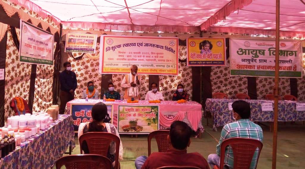 रायगढ़, / आजादी के अमृत महोत्सव के उपलक्ष्य में छत्तीसगढ़ शासन के निर्देशानुसार तथा जिला आयुर्वेद अधिकारी डॉ.मीरा भगत के मार्गदर्शन में आयुर्वेद ग्राम महापल्ली, रायगढ़ में एक दिवसीय नि:शुल्क स्वास्थ्य एवं जागरूकता शिविर का आयोजन 23 फरवरी को संपन्न हुआ।