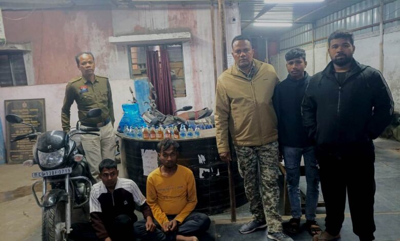 रायगढ़, 24 नवंबर । जूटमिल पुलिस ने रविवार 23 नवंबर 2025 को काशीराम चौक में नाकेबंदी के दौरान अवैध शराब परिवहन के एक बड़ी कार्रवाई करते हुए दो आरोपियों को गिरफ्तार किया है। थाना प्रभारी जूटमिल निरीक्षक प्रशांत राव को मुखबिर से सूचना मिली थी कि दो युवक काले रंग की मोटरसाइकिल पर पुराना सारंगढ़ बस स्टैंड की ओर से काशीराम चौक की तरफ अवैध शराब लेकर आ रहे हैं, जिस पर पुलिस ने तत्काल नाकेबंदी कर दोनों को पकड़ा गया ।