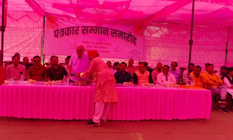 रायगढ़। रायगढ़ स्थित ग्राम नेतनागर के प्रसिद्ध बुजुर्ग स्व. भोपाल सिंह की स्मृति में पत्रकार सम्मान समारोह का आयोजन ग्राम नेतनागर के रहवासियों द्वारा आयोजित किया गया। उक्त समारोह में शहर एवं देहात से जुड़े हुए लगभग 100 पत्रकार शामिल हुए। कार्यक्रम के संयोजक सरदार लल्लू सिंह ने बताया कि मीडिया जगत से स्व. भोपाल सिंह एवं उनका परिवार लगातार जुड़ा रहा। इस दौरान उन्होंने पाया कि मीडिया अपनी जिम्मेदारियों को बखूबी निर्वहन करता है। जिसके चलते स्व. भोपाल सिंह जी की पुण्यतिथि के अवसर पर समाज में मीडिया के योगदान को याद करते हुए पत्रकार सम्मान समारेाह का आयोजन किया गया। उक्त कार्यक्रम में वरिष्ठ पत्रकार सुभाष त्रिपाठी, रमेश अग्रवाल, रामचन्द्र शर्मा आदि ने संबोधन किया। समाजसेवी जगदीश मेहर, सुरेन्द्र पंडा, डॉ. रामकुमार पटेल, नीलकंठ साहू, किशोर कसेर आदि ने भी स्व. भोपाल सिंह की स्मृतियों को ताजा किया। स्व. भोपाल सिंह के व्यवहार एवं कर्मठ चरित्र के बारे में सबने गुणगान किया। कार्यक्रम में स्व. भोपाल सिंह की फोटो पर पत्रकारों के द्वारा माल्यार्पण किया गया। अंत में जलपान कर सम्मान समारोह संपन्न हुआ।