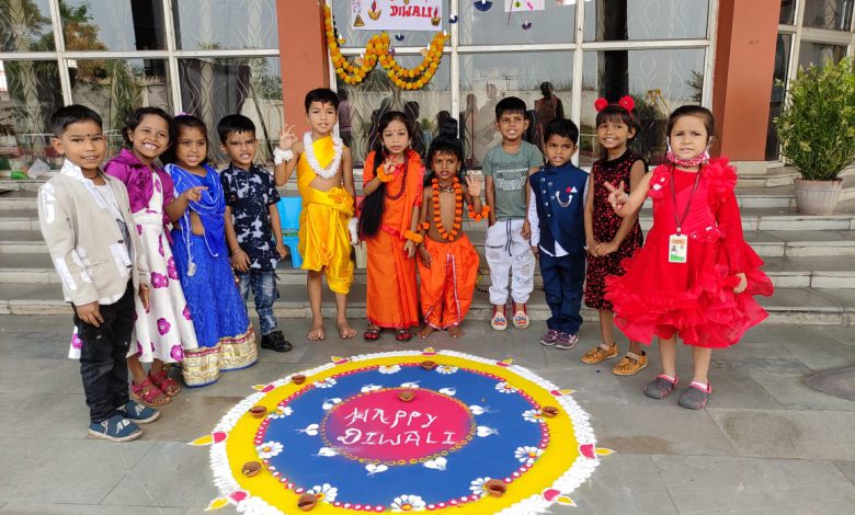 मचाया। इसके लएि टीचर्स ने भी खूूब मेहनत की। बच्चों के संग शानदार रंगोली बनाई। रंग-बिरंगे परिधानों में आए बच्चे काफी खुश नजर आए। राम, लक्ष्मण व माता सीता के रूप में बच्चों को सजाया गया। टीचर्स ने बच्चों को दीपावली त्यौहार क्यों मनाया जाता है, इसकी जानकारी दी। सभी ने मिलकर धूम-धड़ाके के साथ दिवाली सेलिब्रेट किए। माता लक्ष्मी की पूजा-अर्चना कर बच्चों ने खूब फूलझड़ी चलाई। बच्चों के अभिभावकों ने भी स्कूल की इस पहल को खूब सराहा।