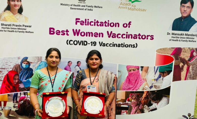 रायगढ़, / कोविड-19 टीकाकरण के अंतर्गत प्रदेश में सर्वाधिक टीके लगाने वाली दो महिला टीकाकरण कर्मियों को केंद्रीय स्वास्थ्य मंत्रालय द्वारा सम्मानित किया गया है। इसी तारतम्य में केंद्रीय स्वास्थ्य एवं परिवार कल्याण मंत्री श्री मनसुख मंडाविया ने आज अंतरराष्ट्रीय महिला दिवस पर नई दिल्ली में आयोजित कार्यक्रम में रायगढ़ की टीकाकरण कर्मी श्रीमती प्रमिला देवांगन को स्मृति चिन्ह प्रदान कर सम्मानित किया। ज्ञात हो कि रायगढ़ के प्राथमिक स्वास्थ्य केन्द्र किरोड़ीमल नगर की श्रीमती प्रमिला देवांगन ने 402 सत्रों में अकेले 45 हजार 463 टीके लगाए हैं। कोविन एप्लीकेशन में दर्ज टीकाकरण डॉटा के मूल्यांकन के आधार पर केन्द्रीय स्वास्थ्य मंत्रालय द्वारा प्रदेश की टीकाकरण कर्मियों का चयन किया गया है।