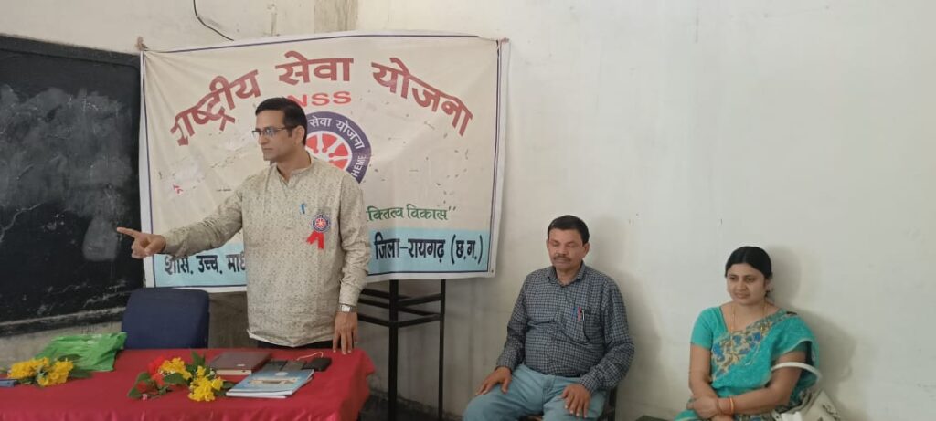 महत्वपूर्ण जिम्मेदारी का निर्वहन कर रहा है । श्री शर्मा ने छात्र छात्राओं को अपने जीवन में सफल होने के कई टिप्स दिए और वर्तमान में खूब मेहनत कर अच्छे अंको से अपने परीक्षा परिणाम देने की शुभकामना दी । अपने प्रेरक उद्बोधन में रामचंद्र शर्मा ने तारापुर विद्यालय के एनएसएस इकाई की सराहना करते हुए इसे पूरे जिले के लिए सक्रिय यूनिट बताया तथा यहां के कार्यक्रम अधिकारी भोजराम पटेल को स्वयं सेवकों के लिए एक विशेष मार्गदर्शक ऊर्जावान कार्यक्रम अधिकारी बताकर प्रदेश स्तर पर श्रेष्ठ कार्यक्रम अधिकारी तथा संस्था के रूप में तारापुर को सम्मानित कराने हेतु उनकी तारीफ की ।