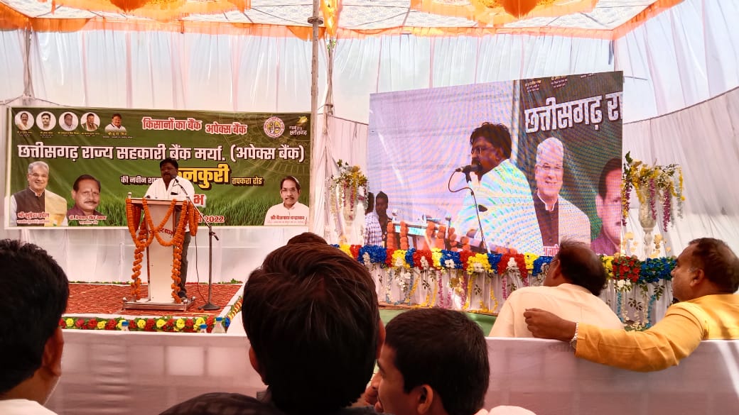 छत्तीसगढ़ के जशपुर जिले के कुनकुरी स्थित सहकारिता अपेक्स बैंक की नई शाखा का आज मुख्यमंत्री भूपेश बघेल व्दारा वर्चुअल शुभारंभ किया .