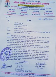 अन्यथा अखिल भारतीय पत्रकार सुरक्षा समिति छत्तीसगढ़ को प्रदेश के पत्रकार साथियों के साथ मुख्यमंत्री हाउस के सामने धरना प्रदर्शन करने के लिये मजबूर होगा जिसकी सम्पूर्ण जवाबदारी आपकी होगी ।