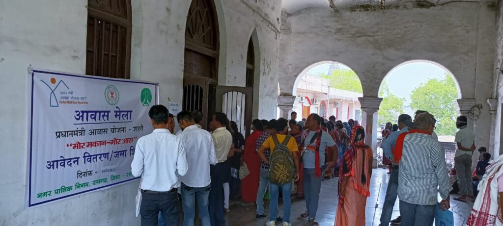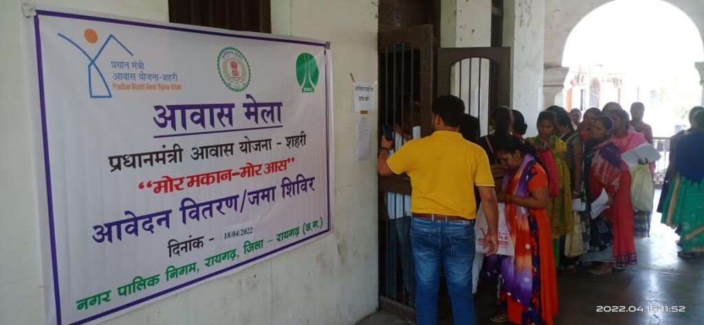 रायगढ़। रायगढ़ नगर निगम अंतर्गत प्रधानमंत्री आवास योजना के घटक मोर मकान मोर आस के तहत नगर निगम में आवास मेला आवेदन शिविर लगाया गया, जहाँ हितग्राहियों ने उपयुक्त दस्तावेज दिखाकर आवेदन प्राप्त किया।आज कुल 370 हितग्राहियों ने आवेदन लिये है।