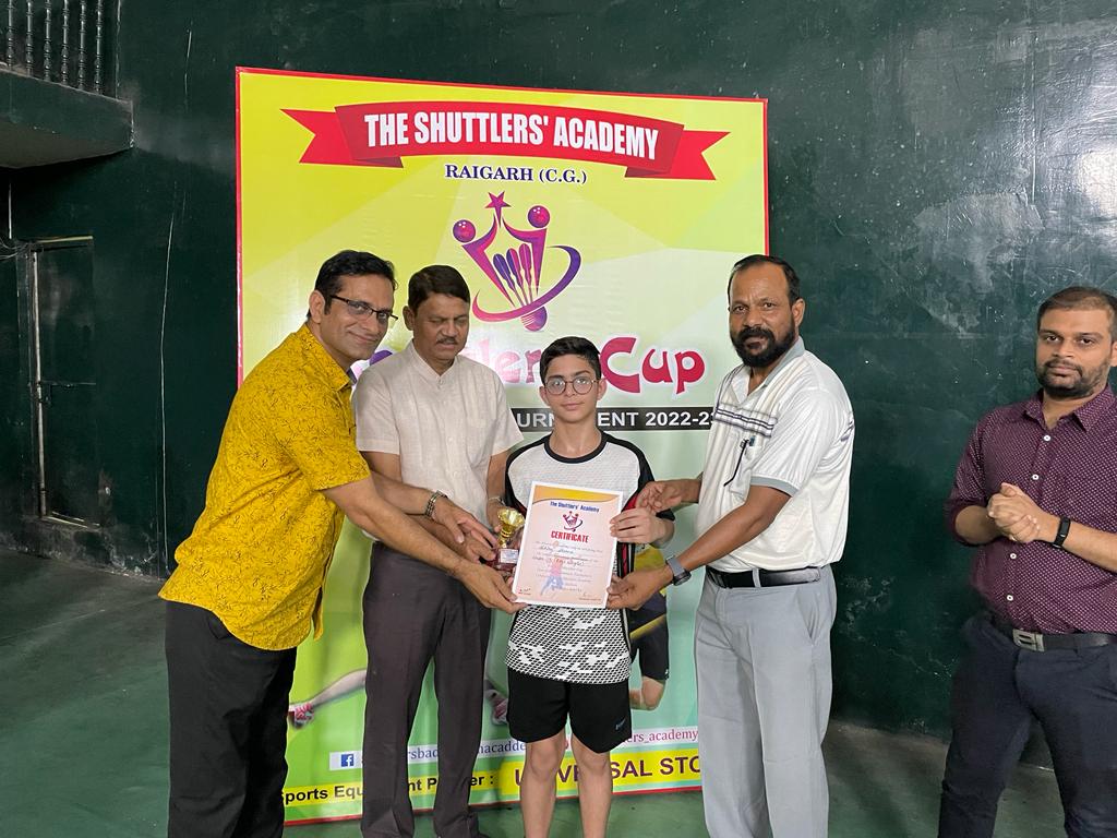 अतिथि श्री संजय पॉल सहायक संचालक खेल एवं युवा कल्याण विभाग श्री रामचंद्र शर्मा अध्यक्ष छ ग विप्र फाउंडेशन सचिव रायगढ़ जिला क्रिकेट संघ समिति सदस्य, वरिष्ठ खिलाड़ी उपेन्द्र सिंह गौतम के कर कमलों से विजेताओं को पुरस्कार दिया गया। जिसमें विजेता इस प्रकार रहे- अंडर 13 बॉयज सिंगल्स विजेता अभिराज शर्मा, उपविजेता आदित्य मेहानी को हराया, अंडर 13 गर्ल्स सिंगल्स विजेता मेघा राठिया उपविजेता रिंकी पटेल अंडर 17 बॉयज सिंगल्स विजेता हर्षवर्धन बारीक़ उपविजेता साई आदित्य, अंडर 17 गर्ल्स सिंगल्स विजेता मेघा महिष उपविजेता ज्योत्स्ना तिवारी, अंडर 19 बॉयज सिंगल्स विजेता आर्यन शर्मा उपविजेता सुयश अग्रवाल, अंडर 19 गर्ल्स सिंगल्स विजेता अंजनी गुप्ता उपविजेता चाहत कटारे रहे। अकादमी के हेड कोच ‘सौरभ पंडा ने आभार प्रदर्शन किया एवं मंच संचालन कोच हितेस ने किया।