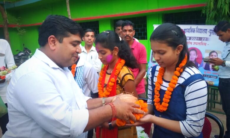 रायगढ़/पुसौर | हाल ही में छत्तीसगढ़ माध्यमिक शिक्षा मंडल द्वारा 10 वीं और 12 वीं बोर्ड परिक्षाओं के परिणाम जारी किया गया है जिसमें रायगढ़ जिले से 10 वीं के प्रवीण सुची में 17 विद्यार्थियों और 12 वीं के प्रवीण सुची में 04 विद्यार्थियों को स्थान मिले हैं | इसी उपलब्धि के उपलक्ष्य में आदर्श ग्राम्य भारती उच्चतर माध्यमिक विद्यालय पुसौर मे छत्तीसगढ़ के 12 वीं बोर्ड परीक्षा मे पूरे राज्य में प्रथम स्थान प्राप्त करने वाली कु. कुन्ती साव,