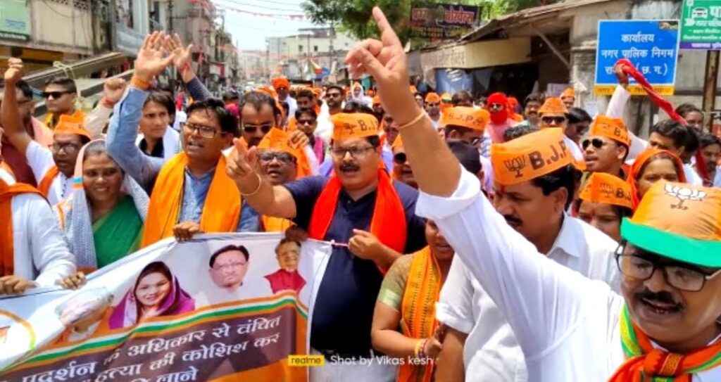 (3)आंदोलन के पूर्व जिला भाजपा कार्यालय के प्रांगण में भाजपा नेता शीला तिवारी, मोहन कुर्रे,विनायक पटनायक,पंकज कंकरवाल,विवेकरंजन सिन्हा,बृजेश गुप्ता,आलोक सिंह,सत्यानंद राठिया,उमेश अग्रवाल , ओपी चौधरी एवं गोमती साय ने कार्यकर्ताओं को संबोधित किया मंच का सफल संचालन जिला भाजपा के महामंत्री अरुण धर दीवान ने किया।