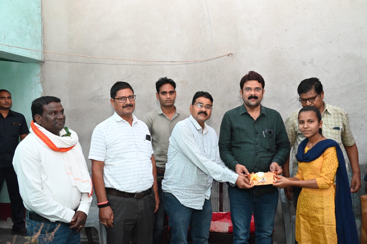 रायगढ़।विधायक प्रकाश नायक मंगलवार की शाम रायगढ़ से लगे ग्राम गढ़उमरिया पहुँचकर कक्षा 10 वीं की टॉपर कु.ज्योति मेहर को उसकी कामयाबी के लिए अपनी बधाई व शुभकामनाएं दी।इस मौके पर विधायक ने कहा कि खूब पढ़ाई व मेहनत कर कक्षा 12 वीं में भी ऐसे ही सफलता हासिल कर पूरे प्रदेश में अपने गाँव व जिले का नाम रौशन करो।उन्होंने मेधावी छात्रा ज्योति का सम्मान करते हुए उसके उज्जवल भविष्य की कामना की।रायगढ़ विधायक द्वारा पूछे गए सवाल की जवाब में उक्त छात्रा ने कहा कि वह भविष्य में आईएएस अधिकारी बनना चाहती है और प्रतिदिन वह सात घंटे पढ़ाई करती है।