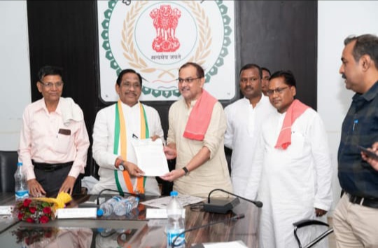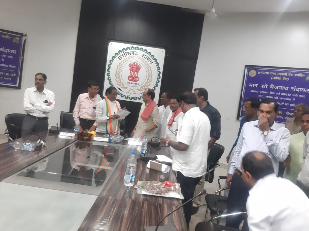 रायगढ़ / आज छ. ग.सहकारिता मर्यादित बैंक (अपेक्सबैंक) के अध्यक्ष श्री बैजनाथ चंद्राकर जी (कैबिनेट मंत्री दर्जा प्राप्त)का रायगढ़ आगमन हुआ जिसमें जिला किसान कांग्रेस के जिला अध्यक्ष राजा शर्मा एवं किसान कांग्रेस के जिला पदाधिकारियों द्वारा घरघोड़ा एवं तमनार में अपेक्स बैंक शाखा खोले जाने के लिए ज्ञापन सौंपा है , साथ ही जिले के किसानों की समस्या तथा समस्या का निवारण के लिए श्री बैजनाथ चंद्राकर जी द्वारा आश्वासन दिया गया है तथा किसानों की समस्या को अवगत कराते हुए रायगढ़ जिला अध्यक्ष राजा शर्मा ने अपेक्स बैंक रायगढ़ शाखा में घरघोड़ा एवं तमनार के किसानों के साथ बैंक के