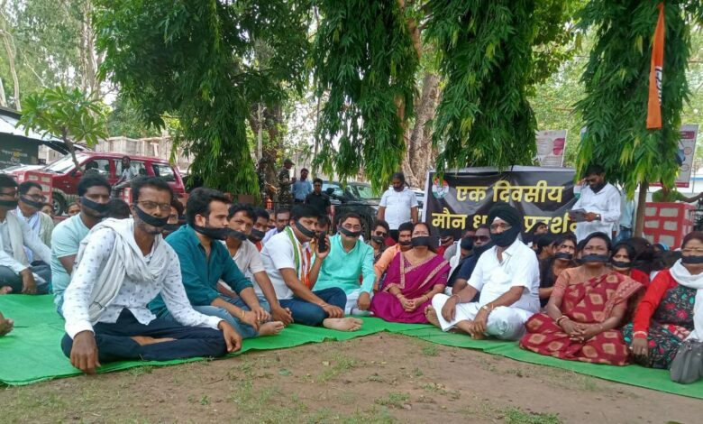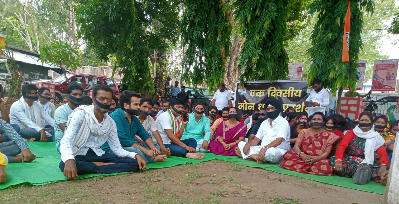 कांग्रेस की राष्ट्रीय अध्यक्ष सोनिया गांधी और राहुल गांधी पर की जा रही ईडी कार्रवाई को लेकर कांग्रेस के हजारों कार्यकर्ताओं ने मुंह पर काली पट्टी बांधकर धरना प्रदर्शन किया.