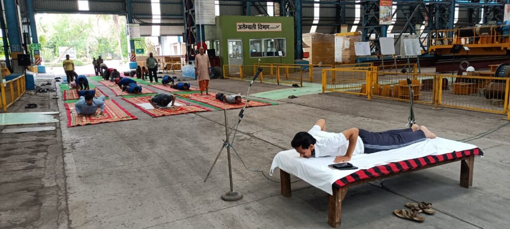 जेएसपी के रायपुर स्थित मशीनरी डिवीजन में कोविड एहतियात का ध्यान रखते हुए ऑनलाइन मनाया गया अंतर्राष्ट्रीय योग दिवस 2022