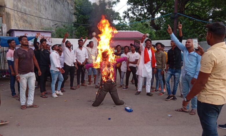 घटना को अंजाम देने वाले को कठोर संदेश दिया जाए। हमारा देश लोकतांत्रिक है हर किसी को अधिकार है अपना विचार रखने का ऐसे में कन्हैयालाल ने नूपुर शर्मा के पक्ष में कुछ कहा तो कोई अपराध नहीं है उन कट्टरपंथियों द्वारा योजनाबद्ध ढंग से उनका हत्या करना देश के कानून व्यवस्था को चुनौती देना है। इन कट्टरपंथियों का आतंकवाद से तार जुड़ा हुआ है। ऐसे लोगों के द्वारा ही आतंकवादी अपने गंदे इरादे को देश में फैलाते हैं। हमारे देशवासियों का खुन बहाते हैं। इसे रोका जाना अति आवश्यक है। प्रदर्शन के दौरान यशवंत निषाद जिला सह सचिव , पिंटू यादव विधानसभा अध्यक्ष!रोहित मरावी विधानसभा उपाध्यक्ष!प्रशांत दीवान सचिव ! नरेश गवेल यदु साहू ,अरुण सारथी !भागीरथी निषाद,लष्मीकांत गवेल,अजय चौहान,सनी केवट ,जय यादव ,सूरज यादव ,छोटे साहू,राकेश सिदार,सरवन यादव ,कृष्णा यादव नरेंद्र ,तेंदुलकर ,विनय बरेठ, विनय यादव,संजू यादव,राजू,लाल,सिधु ,
