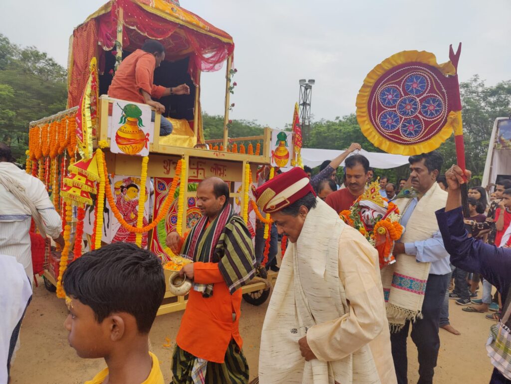 जिंदल आॅफिसर्स क्लब ने जेएसपी परिसर में भगवान जगन्नाथ की पूजा एवं रथयात्रा का आयोजन किया। शुक्रवार सुबह मंगला आरती के साथ पूजन की शुरूआत हुई। फिर सूर्य पूजा, गोपाल वल्लभ और सकाल धूपा की रस्म निभाई गई। दोपहर में रोशा होम के बाद भगवान की रथ प्रतिष्ठा की गई। शाम 4 बजे छेरा पहरा की रस्म कार्यपालन निदेशक सुधांशु पाठक ने निभाई। इसके बाद