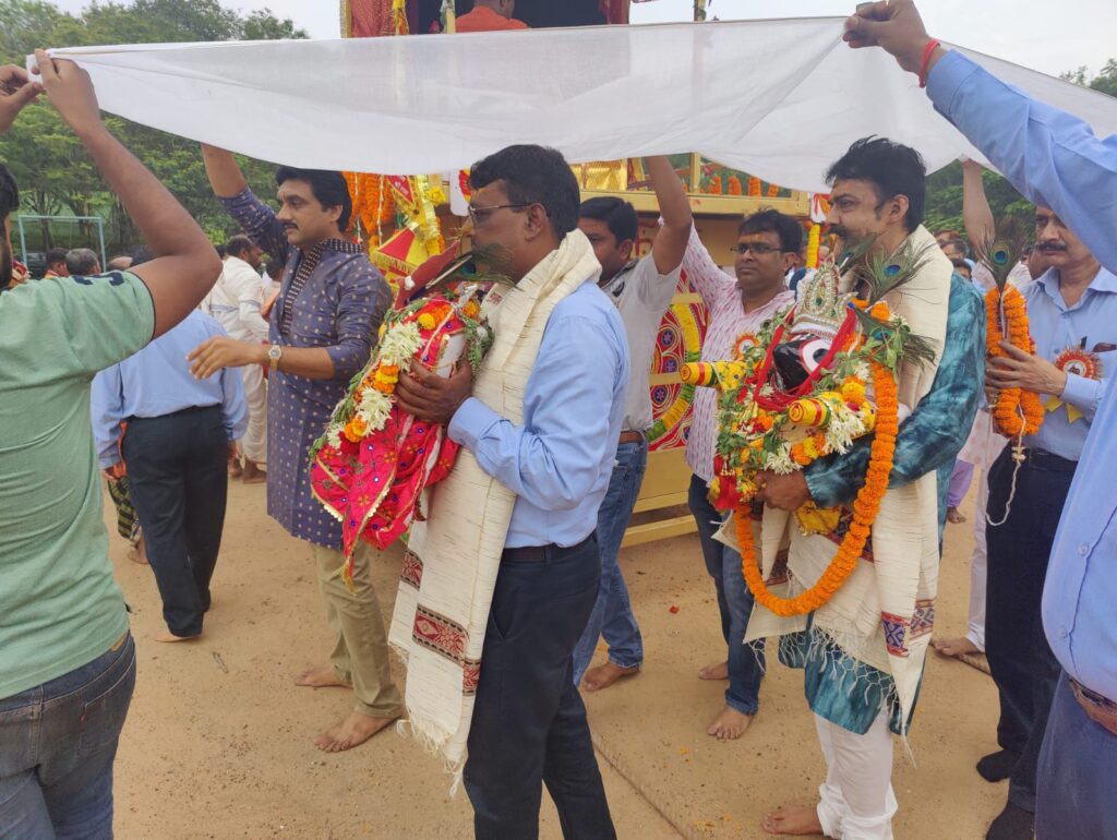 भगवान बलभद्र, देवी सुभद्रा और भगवान जगन्नाथ को रथ पर स्थापित कर रथयात्रा निकाली गई। कंपनी परिसर स्थित दुर्गा पूजा मैदान से निकली यह यात्रा, हिल व्यू कॉलोनी से होते हुए सी एंड डी कॉलोनी पहुंची। यात्रा मेंं जेएसपी परिवार के सदस्यों ने बड़ी आस्था एवं उत्साह से हिस्सा लिया।