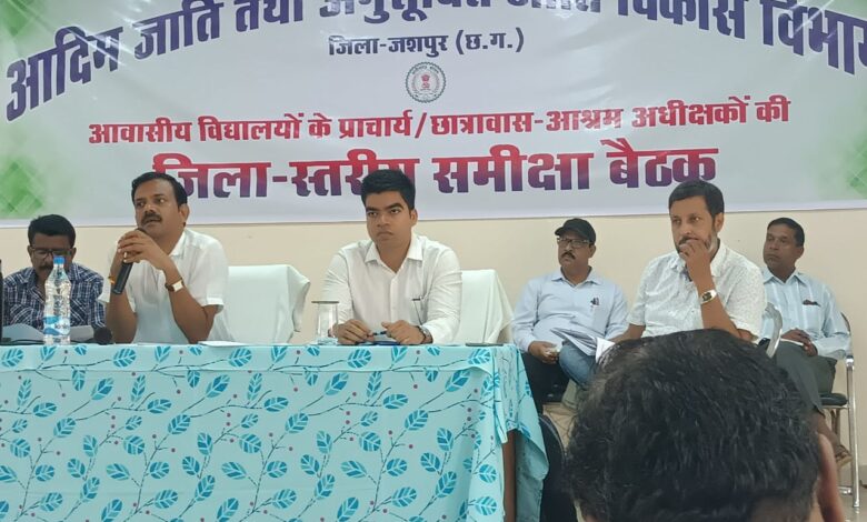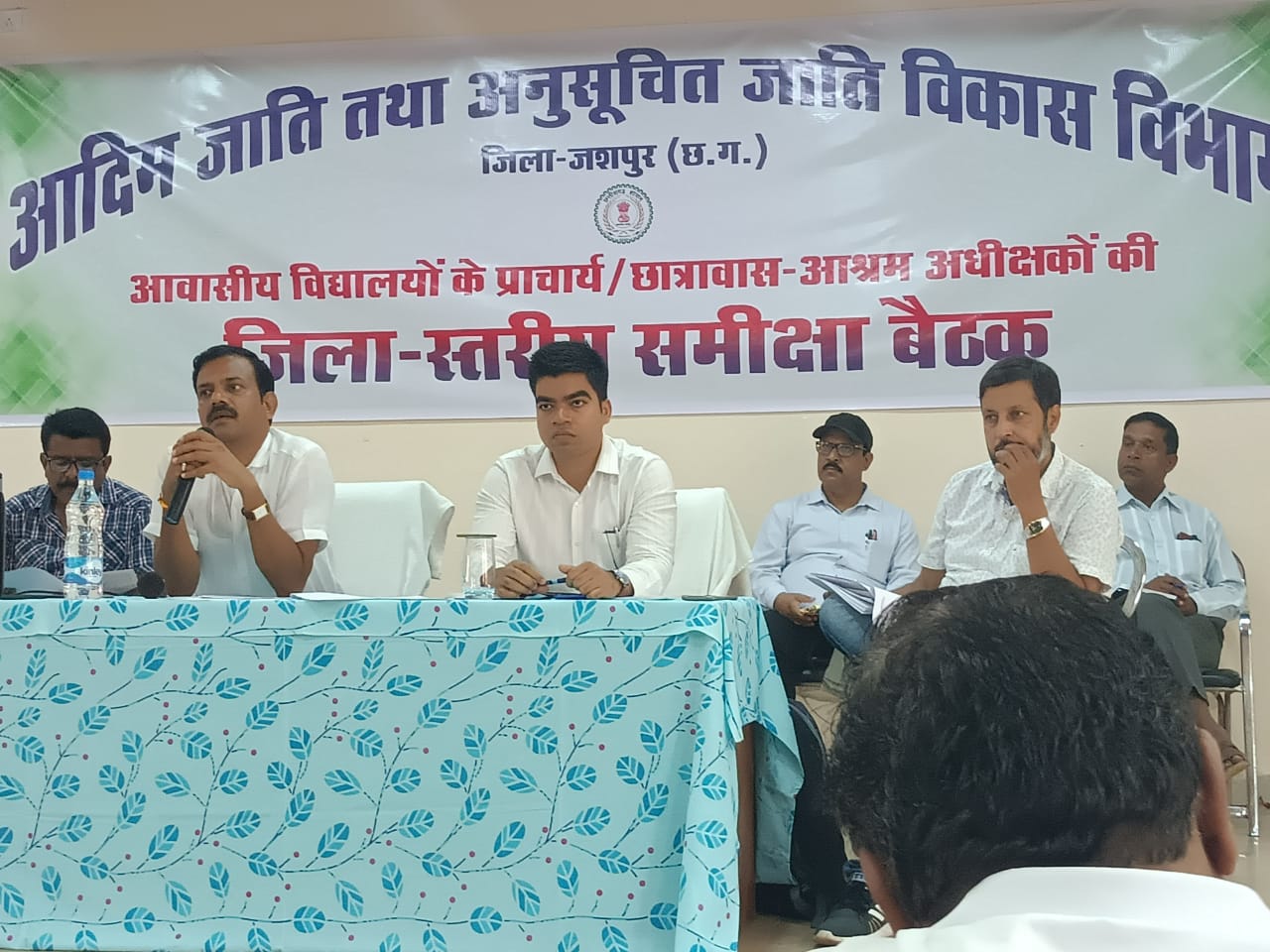 आदिम जाति कल्याण विभाग के उप-आयुक्त बी.के. राजपूत की अध्यक्षता में विभाग द्वारा संचालित आवासीय विद्यालय के प्राचार्यो एवं शासकीय तथा अशासकीय छात्रावास-आश्रमों के अधीक्षकों की जिला स्तरीय बैठक स्वामी आत्मानन्द हिन्दी माध्यम उत्कृष्ट आवासीय विद्यालय के सभागार में आयोजित की गई।