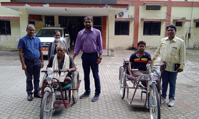 रायगढ़, / सीईओ जिला पंचायत अबिनाश मिश्रा द्वारा समाज कल्याण विभाग अंतर्गत अस्थिबाधित दिव्यांगजन विकासखण्ड बरमकेला के पीपरखूटा निवासी मिलाप चौहान एवं सारंगढ़ के शत्रुघन साहू को बाधारहित जीवन स्तर और आवागमन में सुगमता हेतु मोटराइज्ड ट्राइसाइकिल एवं ट्रायसाइकिल प्रदान की गई। दोनों दिव्यांग उपकरण पाकर खुश हुए और शासन का आभार किया। इस मौके पर कार्यक्रम अधिकारी महिला एवं बाल विकास टी.के.जाटवर, विनय तिवारी उपस्थित रहे।