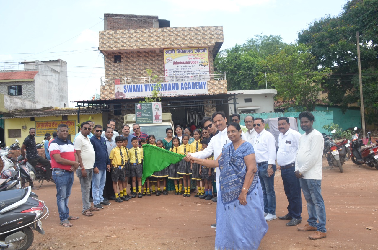 रायगढ़ – रामदास द्रौपदी फाउंडेशन का पर्यावरण संरक्षण रथ गत 13 जुलाई को रवाना किया गया। रथ को रवाना करने के पूर्व रामभाठा स्थित स्वामी विवेकानंद अकादमी के छात्रों में फाउंडेशन की संरक्षक द्रौपदी देवी और संस्थापक चेयरमैन सुनील रामदास द्वारा पौध वितरण किया गया। उसके पश्चात् संरक्षक द्रौपदी देवी और संस्थापक चेयरमैन सुनील रामदास ने पर्यावरण संरक्षण रथ को हरी झंडी दिखाकर रवाना किया। इस विषय पर सुनील रामदास ने बताया कि गत वर्ष से यह रथ जिले के लोगों तक पौधरोपण हेतु पौधा पहुंचाने का कार्य कर रहा है। वर्षा ऋतु में इस रथ के माध्यम से ग्रामीण और शहर के दूरस्थ क्षेत्रों में पौधे उपलब्ध कराया जाता है।