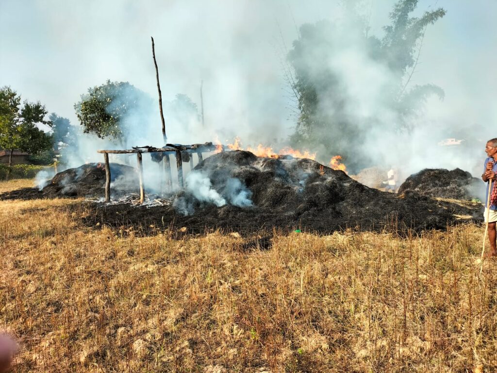 धान की फसल में अचानक धूंआ निकलता देख कर जब तक किसान कुछ समझ पाते तब तक चारों ओर आग की लपटें जोर पकड़ चूकी थी.