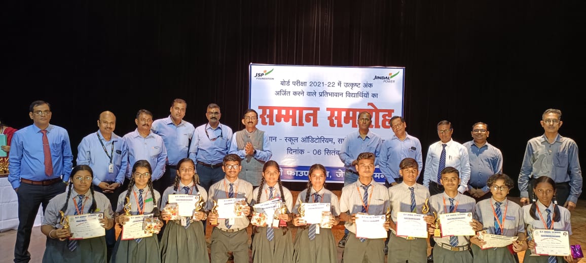 तमनार- जेएसपी फाउण्डेशन, जिंदल पावर लिमिटेड द्वारा सत्र 2021-22 में आयोजित बोर्ड परीक्षा में उत्कृष्ट अंक अर्जित कर अपने परिजनों, विद्यालय एवं क्षेत्र का नाम रोशन करने वाले ओ.पी. जिंदल स्कूल, सावित्रीनगर एवं कुंजेमुरा के प्रतिभावान विद्यार्थियों को स्मृति चिंह व प्रशस्ती पत्र प्रदान कर उन्हें सम्मानित किया गया।