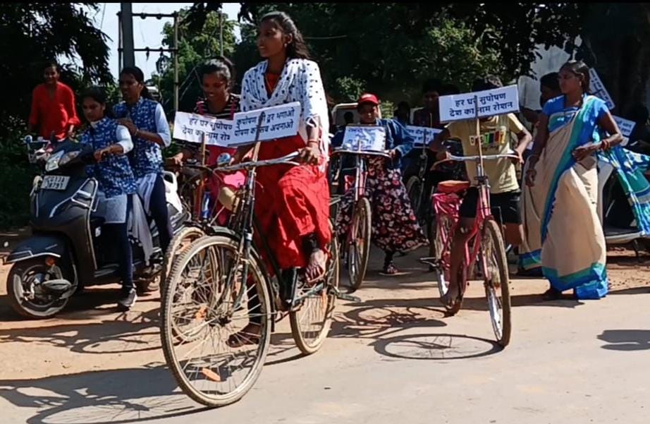 सितंबर 1 से 30 तक चलाए जा रहे पोषण माह के अंर्तगत माह के प्रथम सप्ताह में सुपोषण संगीनियोंं द्वारा छोटे- छोटे समूहों में बैठक, परिवार भ्रमण एवं सेहतमंद रसोई के तरीकों के माध्यम से गर्भवती एवं शिशुवती महिलाओं को पौष्टिक भोजन के महत्व के विषय में जागरूक किया जा रहा है। वहीं नवीन पहल के रूप में किशोरी बालिकाओं, आंगनवाड़ी कार्यकर्ताओं एवं सुपोषण संगीनियोँ के द्वारा ग्राम रोडोपाली में विशाल साइकिल रैली का आयोजन किया गया। जिसमें ग्राम डोलेसरा, चितवाही, रोडोपाली, भालुमुड़ा, ढोलनारा, इत्यादि सहित कुल 10 गावों की 64 किशोरी बालिकाओं व 12 आंगनवाड़ी कार्यकताओं नें भाग लिया।