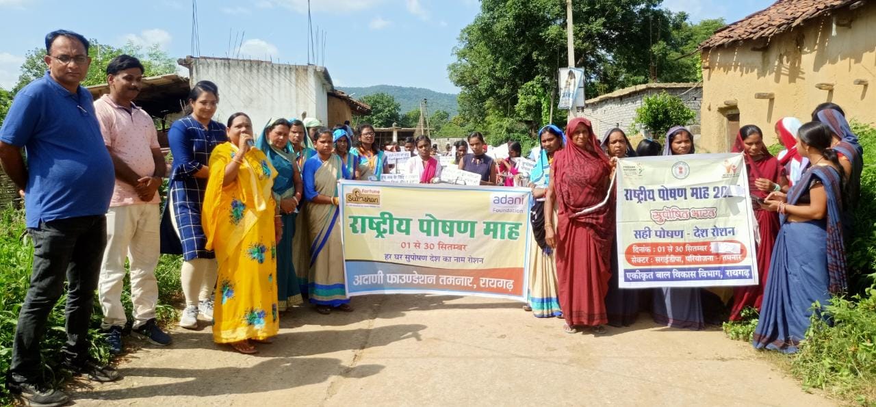 तमनार; 14 सितंबर 2022: सितम्बर माह पूरे देश में पोषण माह के रुप में मनाया जा रहा हैं। इसी उपलक्ष्य में अदाणी फाउंडेशन द्वारा तमनार विकासखण्ड के 32 गांवों में पूर्ववत संचालित सुपोषण परियोजना के संगीनियों द्वारा पोषण जागरुकता के कई कार्यक्रम आयोजित किये जा रहे हैं।