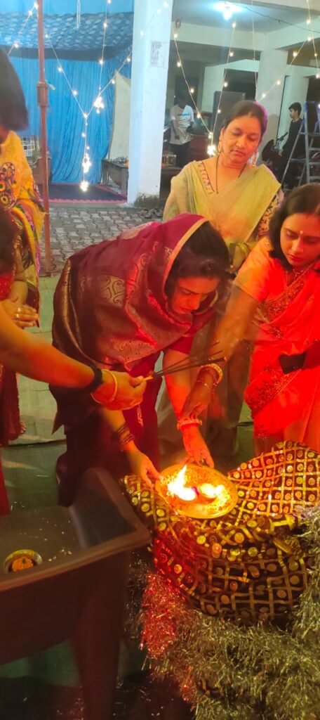 कल देर शाम गरबा के आयोजन में मुख्य अतिथि के तौर पर रायगढ़ विधायक प्रकाश नायक की पत्नी श्रीमती सुषमा नायक का आगमन हुआ। सर्वप्रथम सुषमा नायक ने पूरे विधि विधान से मां दुर्गे की पूजा अर्चना की तत्पश्चात गरबा का आयोजन शुरू हुआ। कॉलोनी के सभी महिलाओं के साथ श्रीमती सुषमा नायक ने भी गरबा नृत्य किया। सभी कॉलोनी वासियों को नवरात्रि की शुभकामनाएं दी और आयोजन के लिए भी बधाई दी। कॉलोनी वासियों मैं भी सुषमा प्रकाश नायक के आगमन को लेकर काफी हर्ष व्याप्त था। कॉलोनी वासियों ने भी सुषमा प्रकाश नायक का आभार व्यक्त किया।।
