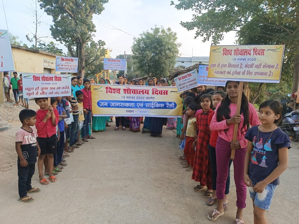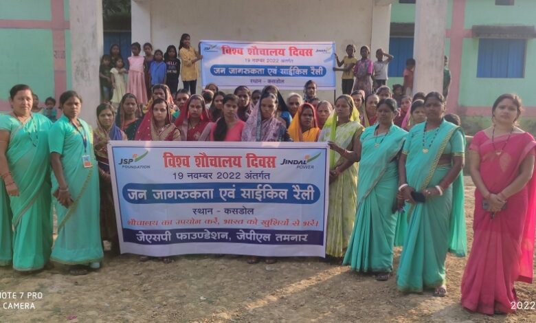 तमनार। जेएसपी फाउण्डेशन, जेपीएल तमनार द्वारा विश्व शौचालय दिवस 19 नवम्बर 2022 के अवसर पर ग्रामों में स्वस्थ,स्वच्छ वातावरण निर्माण के लिए शौचालयों के नियमित उपयोग करने हेतु ग्राम तमनार, पाता, झिंकाबहाल, कसडोल, जांजगीर एवं राबो बांध प्रक्षेत्र के ग्राम डेहरीडीही में सायकल रैली निकालकर व जनजागरूकता कार्यक्रमों का आयोजन किया गया। इस दौरान उक्त ग्रामों में एकांकी, प्रश्नमंच नृत्य एवं सायकल रैलियों का आयोजन कर शौचालय के निर्माण व इसके उपयोग हेतु लोगों को प्रोत्साहित किया गया। विश्व शौचालय दिवस के अवसर पर ग्राम पाता में कार्यक्रम पूर्व सरपंच प्रेमसिंह भगत, पूर्व सरपंच, हेमसागर साव, पूर्व उपसरपंच, सुरेन्द्र साव, पंच, प्रबुद्ध नागरिक श्याम लाल सिदार एवं प्रबुद्ध ग्राम्यजनों की गरीमामय उपस्थिति में आयोजित की गई। कार्यक्रम को सम्बोधित करते हुए प्रेमसिंह भगत ने उपस्थित सभी ग्राम्यजनों महिलाओं व समस्त ग्रामवासियों को शौचालय का समुचित उपयोग करने का आग्रह किया। साथ ही कहा कि षौचालय बनवाना ही काफ ी नहीं है, यदि हम शौचालय का समुचित उपयोग नही करेंगे, तो हम स्वछता की कमी से होने वाली बीमारियों से पीड़ीत हो जायेंगे। उन्होनें उपस्थित बच्चों से आग्रह किया कि वे शौच के लिये बाहर न जायें तथा अपने माता पिता व दादा दादी सभी को भी शौचालय के उपयोग के फायदे बतायें। हेमसागर सिदार, सरपंच ग्राम जांजगीर ने अपने सम्बोधन में समस्त ग्रावासियों से आग्रह किया कि वे अपने ग्राम में शौचालयों का नियमित उपयोग करें एवं स्वच्छता पर विषेष ध्याान देवे।