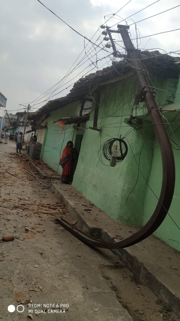 तेज थी कि चालक डंफर से नियंत्रण खो दिया और डंफर पलट गई। डंफर ने पलटने से पहले बस्ती में लगे कई बिजली के खंभों और बाइक को रौंद दिया। हालांकि कोई भी जनहानि नही हुई। घटना के बाद पुलिस ने डंफर चालक को हिरासत में ले लिया है।