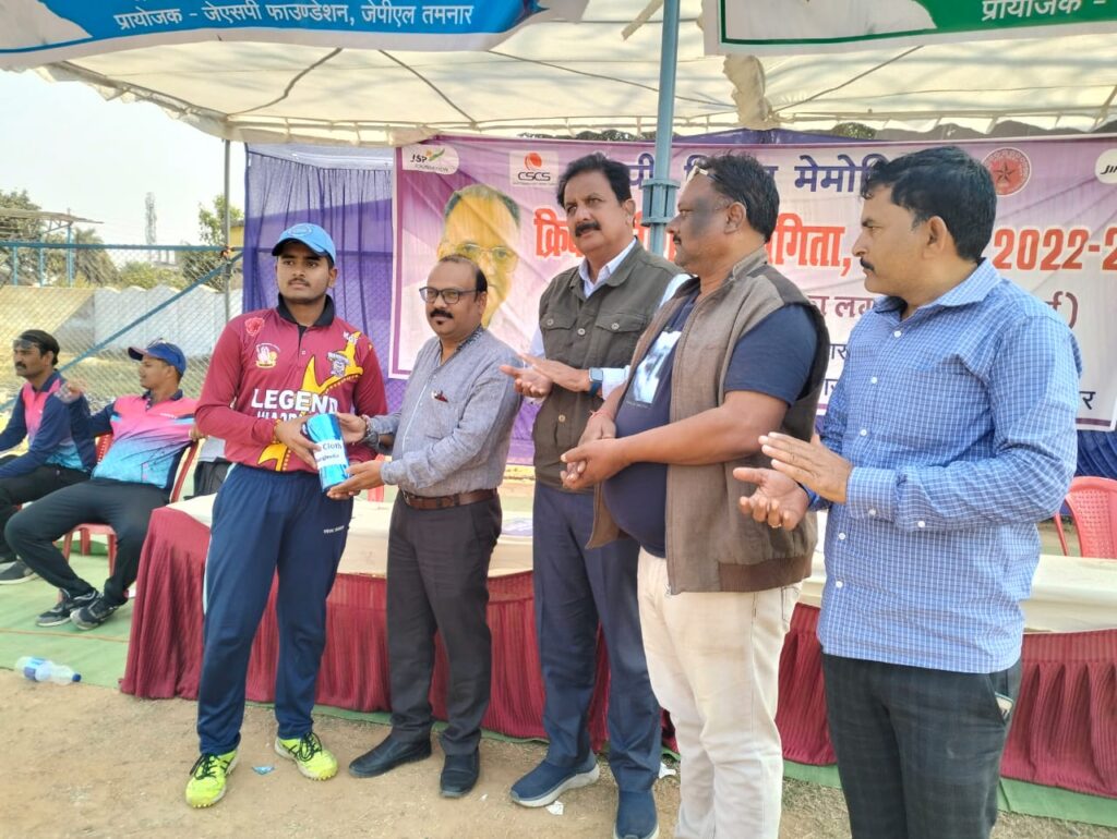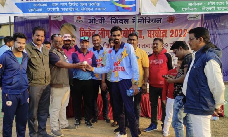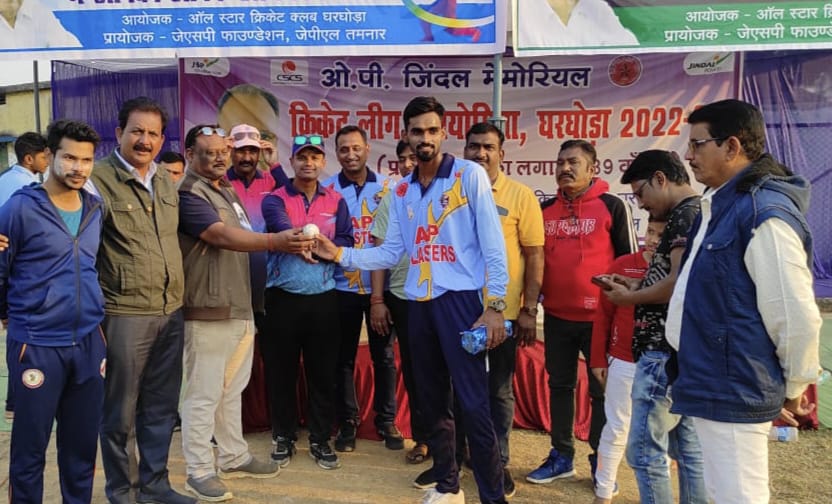 घरघोड़ा-ओ पी जिंदल मेमोरियल क्रिकेट लीग में आज दो अंतिम मैच खेले गए जिसमें लीजेंड वारियर्स ने पाली फाइटर को 5 विकेट से परास्त किया टॉस जीतकर पाली फाइटर ने पहले बल्लेबाजी करते हुए 20ओवर में 9 विकेट के नुकसान पर 113 रन बनाए जिसमें सुनील बहरा 40 रन अक्षत गुप्ता 16 रन अनुग्रह नारायण चार विकेट राजा गोरख 3 विकेट। लीजेंड वारियर्स ने 5 विकेट के नुकसान पर लक्ष्य को प्राप्त कर लिया मोहसिन खान 57 रन अनुग्रह नारायण सिंह 28 रनों का योगदान दिया इस मैच के मैन आफ द मैच अनुग्रह नारायण सिंह है,