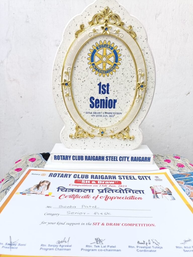 रायगढ़। शहर की प्रसिद्ध सामाजिक संस्था रोटरी क्लब रायगढ़ स्टील सिटी के द्वारा सीट एवं ड्रॉ प्रतियोगिता करवाई गई थी। जिसमें तत्काल विषय पर ड्राईंग बनाकर अपनी प्रतिभा का प्रदर्शन किया जाना था। जिसमें संस्कार पब्लिक स्कूल के श्वेता पटेल ने सीनियर वर्ग में प्रथम स्थान एवं कु. मेघा साहू ने तृतीया स्थान प्राप्त कर प्रतियोगिता में पुरस्कार प्राप्त किया। संस्था के कार्यक्रम में निर्णायक सदस्य श्रीकांत दीक्षित ने बताया कि