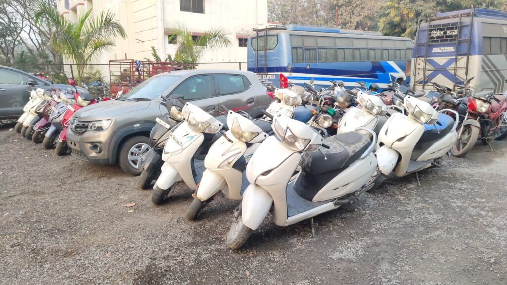 आरोपियों से जप्त मशरूका– 52 नग दुपहिया वाहन (मोटर सायकल+स्कुटी) एवं 1 बिना नंबर प्लेट रेनो क्विड कार कुल कीमत-23,20,000 रूपये ।
