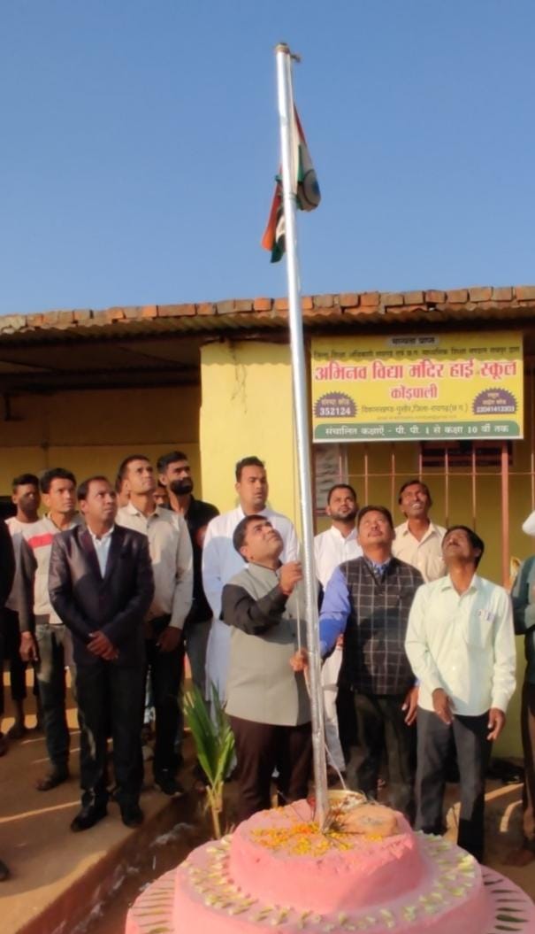 रायगढ़। आज 74 वें गणतंत्र दिवस के पावन अवसर पर रायगढ़ विधानसभा के पुसौर मंडल के ग्राम कोड़़पाली स्थित अभिनव विद्या मंदिर हाई स्कूल में आयोजित गणतंत्र दिवस समारोह में मुख्य अतिथि के रुप में शामिल रायगढ़ के युवा भाजपा नेता विकास केडिया द्वारा तिंरगा फहराया गया।