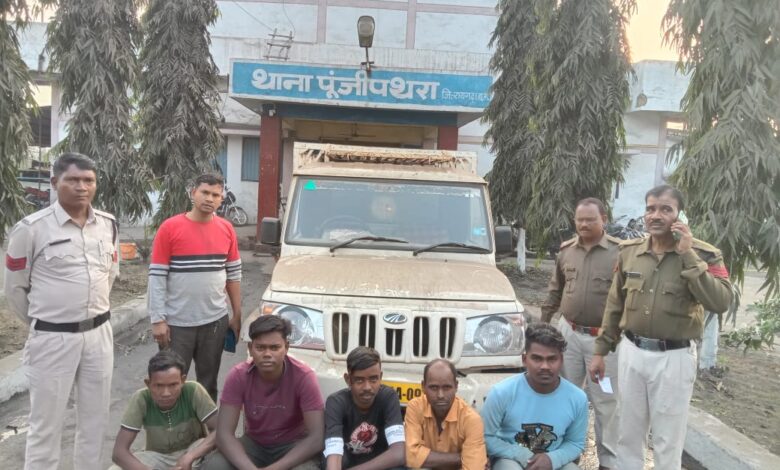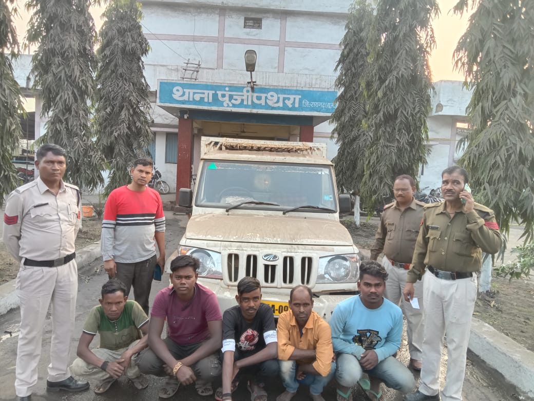 अन्य आरोपियों की पतासाजी के क्रम में आज चश्मदीद गवाहों, सीसीटीवी कैमरों के फुटेज पर 5 आरोपियों की पहचान किया गया है । घटना में शामिल आरोपी- (1) भानु प्रताप भोय पिता त्रिलोचन भोय उम्र 19 साल (2) श्यामलाल सिदार पिता मनीराम सिदार उम्र 18 साल 6 माह (3) शत्रुघन सिदार पिता तुलसीराम सिदार 24 साल (4) रामाधीन सिदार पिता प्रेमलाल सिदार 24 साल (5) प्रेम सिदार पिता स्वर्गीय सोखाराम सिदार उम्र 29 साल सभी निवासी बरपाली थाना पूंजीपथरा को हिरासत में लिया गया। पूछताछ में आरोपियों ने अपराध में शामिल होना बताया है जिनसे अपराध में प्रयुक्त पिकअप वाहन क्रमांक सीजी 13 एल. ए. 0974 तथा आरोपी भानु प्रताप भोय और श्यामलाल सिदार से घटना में प्रयुक्त दो डंडा जप्त कर आरोपियों को जुडिशल रिमांड पर भेजा गया है । आरोपियों की पतासाजी, गिरफ्तारी में थाना प्रभारी पूंजीपथरा निरीक्षक जितेंद्र एसैया हमराह स्टाफ एएसआई जय राम सिदार, प्रधान आरक्षक रामप्रसाद यादव, आरक्षक धर्मेन्द्र सिंह, विद्याधर सिदार शामिल थे ।