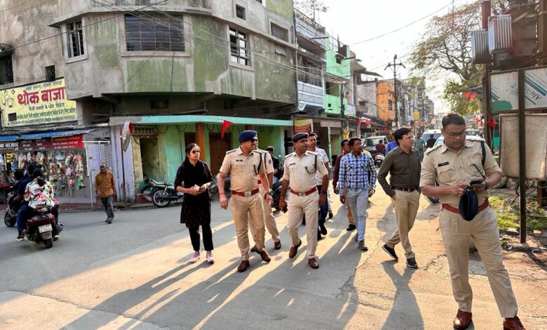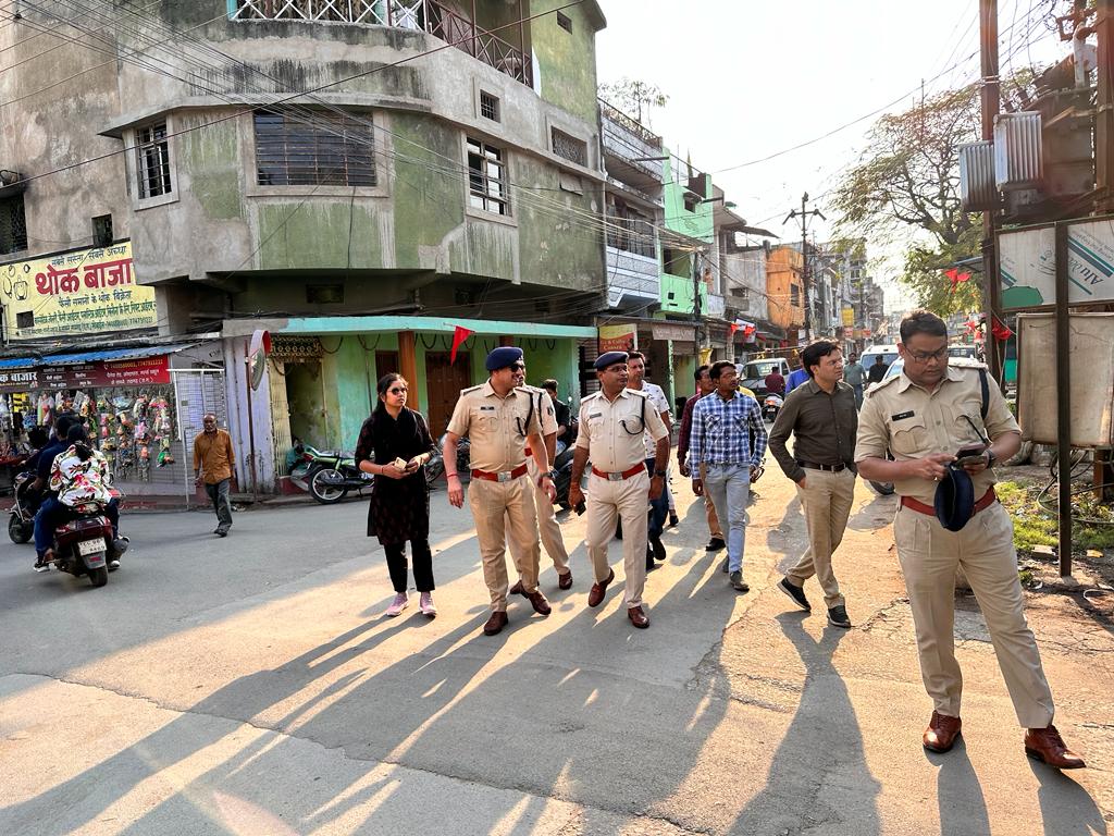 *रायगढ़* । जिले में 30 मार्च को रामनवमी के उपलक्ष में सर्व समाज के द्वारा भव्य शोभायात्रा का आयोजन किया जावेगा । शोभायात्रा में किसी प्रकार की अव्यवस्था ना हो इसे लेकर प्रशासन व पुलिस अधिकारीगण तैयारियों का जायजा लिया जा रहा है । इसी क्रम में आज शाम एडिशनल एसपी संजय महादेवा, सीएसपी रायगढ़ अभिनव उपाध्याय, डीएसपी ट्रैफिक सुशांत बनर्जी, तहसीलदार रायगढ़ तृप्ति चंद्राकर, थाना प्रभारी कोतवाली शनिप रात्रे, विद्युत विभाग के सुनील कुमार साहू व नगर निगम के रमेश ताती, सफाई दरोगा राजेश पाण्डेय, पीडब्ल्यू के अधिकारीगण तथा डीएसबी प्रभारी डी.पी. साहू के द्वारा आयोजन समिति के सदस्यों के साथ श्री रामनवमी शोभा यात्रा के रूट का निरीक्षण किया गया । रूट पर अनावश्यक पड़े