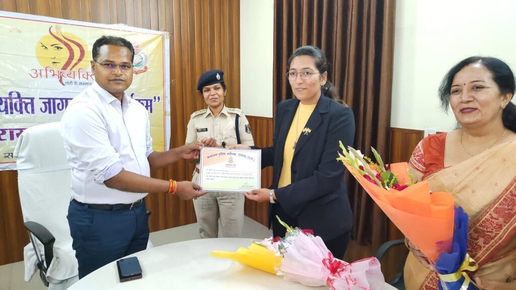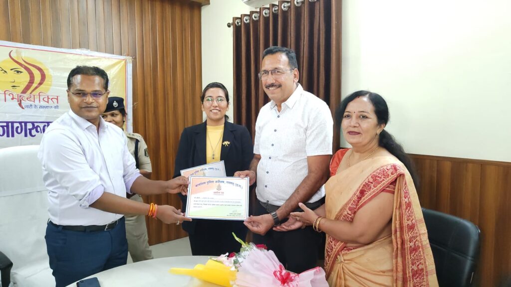 (आईयुसीएडब्लु) श्रीमती निकिता तिवारी, उपनिरीक्षक संतरा चौहान, उपनिरीक्षक (एम) मनोरमा बहिदार, उपनिरीक्षक (एम) द्रौपदी पटेल, महिला सेल प्रभारी एएसआई मंजु मिश्रा, थाना प्रभारी अजाक एएसआई सरस्वती महापात्रे, एएसआई कुसुम कैवर्त, एएसआई (एम) रूपा ठाकुर, प्रधान आरक्षक रेणु मंडावी तथा अन्य पुलिसकर्मी के साथ मीडिया साथी भी मौजूद थे