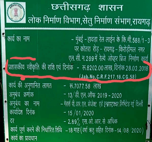 गुरुपाल भल्ला ने कोतरा रोड ओवरब्रिज लग रहे सरकारी बोर्ड की तस्वीरें मीडिया को उपलब्ध कराते हुए बताया कि कोतरा रोड रेलवे ओवर ब्रिज के लिए 80202 लाख की प्रशासकीय स्वीकृति 28 मार्च 2018 को ही मिल गई थी जबकि प्रकाश नायक ग्यारह दिसंबर 2018 में विधायक बने। गुरुपाल भल्ला ने सवाल किया है कि विधायक बनने के 9 महीने पहले ही प्रशासकीय स्वीकृति प्राप्त कर चुके कोतरारोड ओवरब्रिज का श्रेय प्रकाश नायक आखिर किस हक से ले रहे है ?