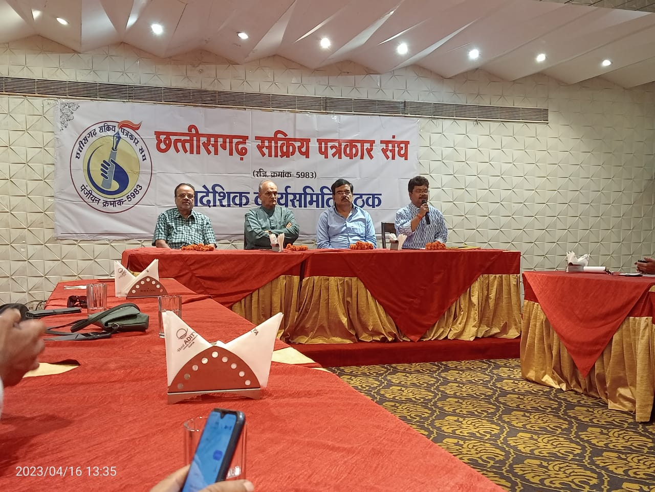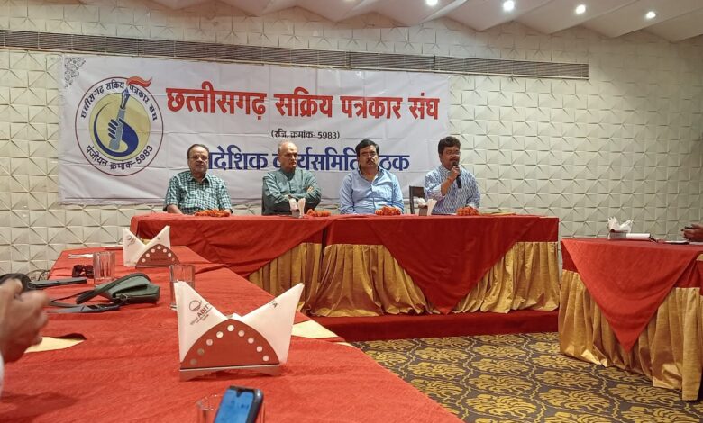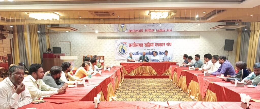 रायगढ़:- छत्तीसगढ़ सक्रिय पत्रकार संघ के प्रादेशिक कार्यसमिति की आवश्यक बैठक दिनांक 16 अप्रैल को रायपुर के हाँटल आदित्य में संपन्न हुई । जिसमे संघ के फाउंडर मेम्बर ,संरक्षक, प्रादेशिक पदाधिकारियों , प्रादेशिक कार्यकारिणी सदस्यों , संभागीय अध्यक्ष, सभी जिलाध्यक्ष एवं महासचिवों ने हिस्सा लिया । बैठक में प्रादेशिक इकाई के चुनाव/विस्तार ,प्रत्येक जिला ईकाईयों के पुनर्गठन/ मनोनयन सहित संघ के पिछले क्रिया-कलापों और इस वर्ष के आगामी कार्यक्रमों के संबंध में विस्तृत चर्चा की गयी। आगामी जुलाई माह में तीन दिवसीय राष्ट्रीय पत्रकार सम्मेलन किये जाने के संबंध में भी चर्चा हुई । जिसकी प्रारंभिक तैय्यारियां हो चुकी हैं । इस बैठक में इस भव्य आयोजन के संबंध में भी चर्चा कर कार्यक्रम का फाइनल स्वरूप तैयार किया गया है।