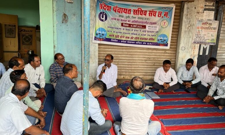 रायगढ़। छत्तीसगढ़ में पिछले 47 दिन से प्रदेश के ग्राम पंचायत सचिवों ने अपने नियमितीकरण की मांग को ले कर छत्तीसगढ़ सरकार के विरूद्ध मोर्चा खोल कर अनिश्चितकालीन हड़ताल पर चले गये है इस बीच सचिवों ने हड़ताल को व्यापक रूप देते हुए क्षेत्रीय विधायकों के समक्ष ज्ञापन पत्र सौंपने के साथ ही राजधानी रायपुर में भी अपनी उपस्थिती दर्ज कराई है। लेकिन भूपेश बघेल सरकार ने इनकी मांग को दरकिनार करते हुए अभी तक कोई प्रतिक्रिया नहीं दी है। प्रदेश में पंचायत सचिवों ने भूपेश बघेल सरकार की वादा खिलाफी से आक्रोशित और मायुस होकर एक बार भी ग्राम पंचायतों का कामकाज बन्द कर हड़ताल पर बैठ गए है, जिसके कारण ग्राम पंचायतों का विकास कार्य प्रभावित हो रहा है शासन की महत्वकांक्षी योजनाओं के कार्य ठप होने से ग्राम जन परेशान है।