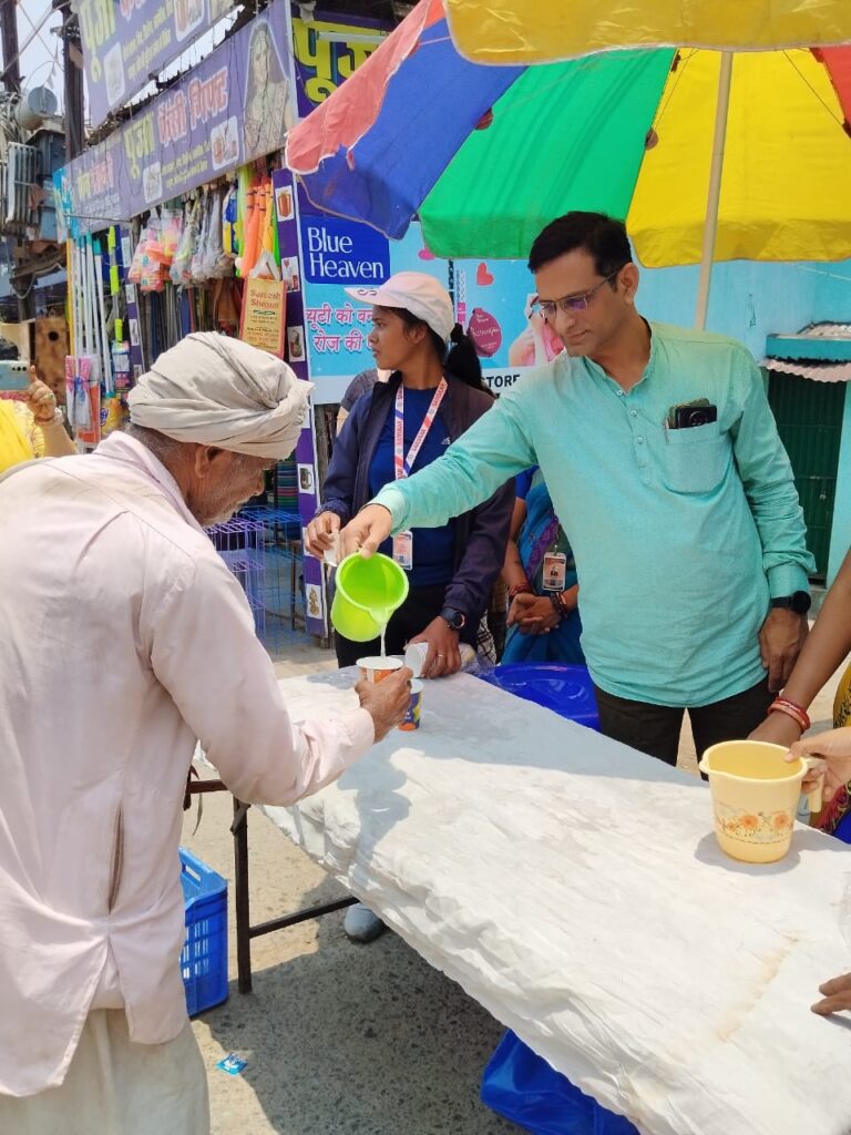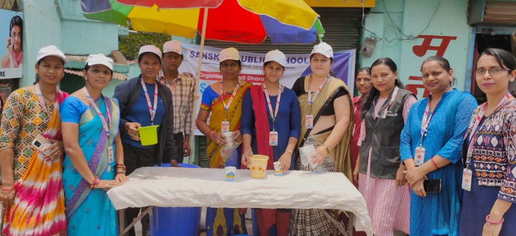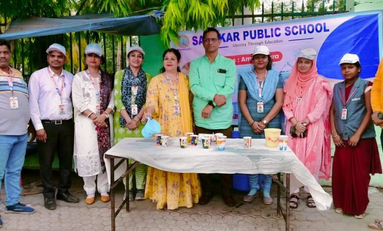का चयन कर प्रात: 10 बजे से लेकर दोपहर 1 बजे तक जल एवं शर्बत का वितरण किया गया। जिसका लाभ हजारों लोगों ने उठाया। प्राचार्या श्रीमती रश्मि शर्मा ने कहा कि ऐसे कार्यों से पुण्य तो मिलता ही है साथ में विद्यार्थियों में भी सेवाभावना जागृत होती है। यही कारण है कि संस्कार पब्लिक स्कूल शिक्षा के साथ-साथ व्यक्तित्व विकास कार्यक्रम भी करवाती रहती है।