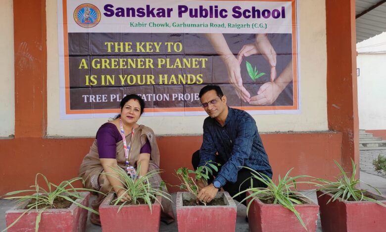 रायगढ़। शहर की प्रसिद्ध शैक्षणिक संस्था संस्कार पब्लिक स्कूल में सोमवार को विश्व पर्यावरण दिवस समारोह का आयोजन किया गया। इस अवसर पर छात्र-छात्राओं व शिक्षक-शिक्षिकाओं ने स्कूल परिसर में पौधरोपण किया और उसकी सुरक्षा व संवर्धन कर पेड़ बनाने का संकल्प लिया।