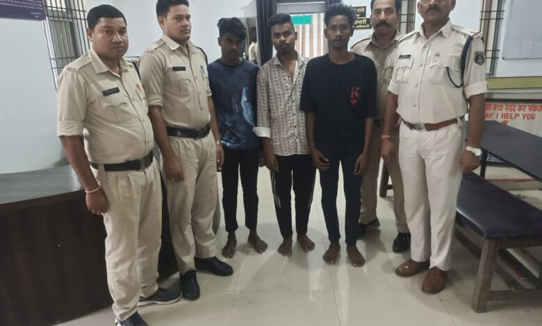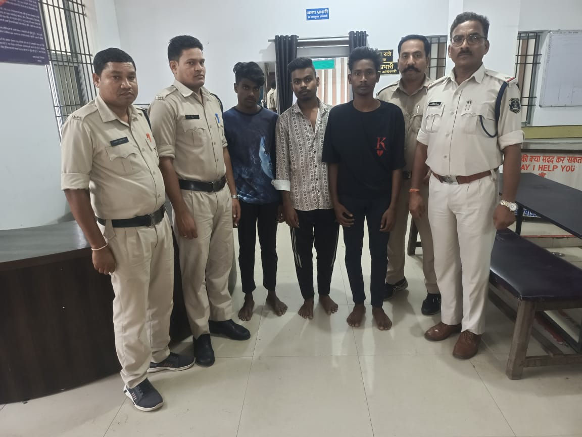 *रायगढ़* । कोतवाली पुलिस ने 11 जून को इंदिरानगर में शादी घर पर हुये मारपीट के चार आरोपियों को हत्या के प्रयास और आर्म्स एक्ट की धाराओं में गिरफ्तार कर रिमांड पर भेजा गया है जिनमें से एक आरोपी विधि के साथ संघर्षरत बालक है तथा मारपीट में शामिल एक आरोपी फरार है।