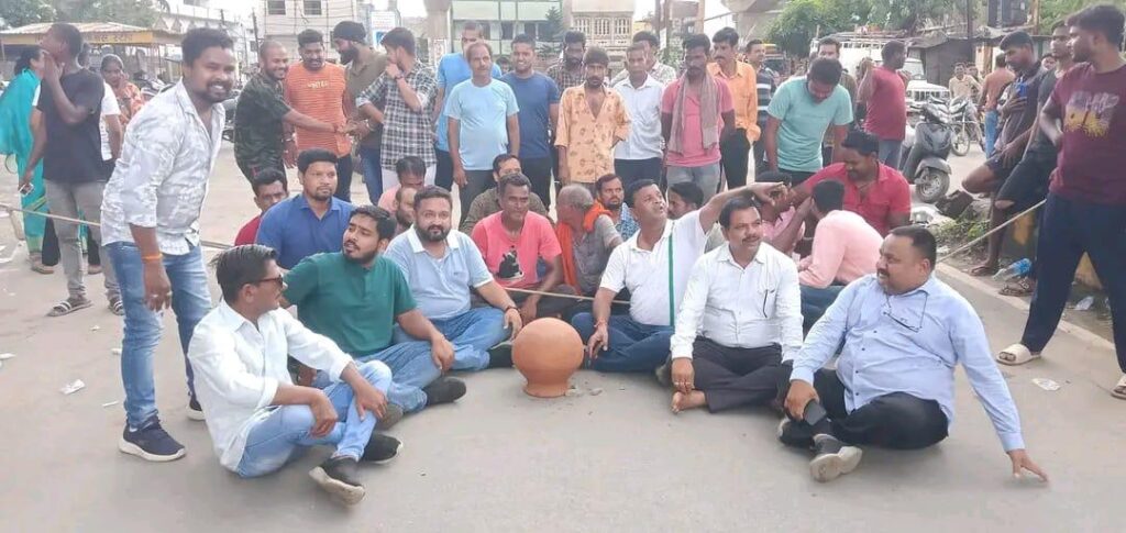 रायगढ़…बीते छह महीनों से पानी की समस्या को लेकर परेशान हो रहे वार्ड नं 30 के रहवासियों का गुस्सा आज फिर फूटा।शहर सरकार और निगम प्रशासन के निकम्मेपन से त्रस्त लोगों ने आज मिनी माता चौक में पार्षद पति मुक्तिनाथ बबुआ के साथ आकर रोड जाम कर दिया।देखते ही देखते वहां लोगों की भीड़ इकट्ठी होने लगी और सैकड़ों लोग आंदोलन से जुड़ने लगे।खबर मिलते ही पूर्व विधायक विजय अग्रवाल,भाजपा जिलाध्यक्ष उमेश अग्रवाल,गुरुपाल भल्ला,विकास केडिया,दिवेश सोलंकी सहित तमाम भाजपा नेता आंदोलन स्थल पर पहुंच गए।और रायगढ़ विधायक मुर्दाबाद,महापौर मुर्दाबाद के नारे लगाना शुरू कर दिया।